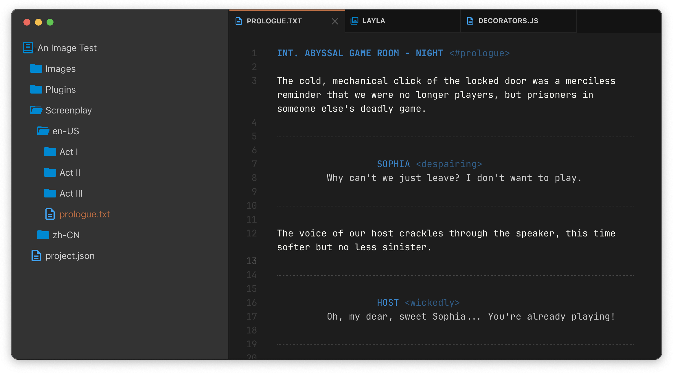 Inkweaver is a visual novel engine that uses text-based screenplays, layered art, and modular plugins to build desktop and web-ready visual novels.